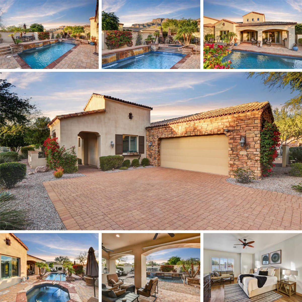 GORGEOUS, FULLY FURNISHED, ''POTTERY BARN STYLE'' VILLA WITH VIEWS OF SUPERSTITION MOUNTAIN!! This 3 bedroom, 3 bath, 2705 Sq Ft. Villa, located in the prestigious, gated Superstition Mountain Golf and Country Club, has it all. Located on a quiet cul-de-sac, it exudes curb appeal with a custom stone exterior. Once inside the large floor tile, granite countertops, custom widow coverings and elegant furnishings provide a sophisticated feel. Each of the 3 bedrooms has an ensuite bathroom, highlighted by a spacious primary bedroom with a spa-like bathroom and walk-in closet. The secondary bedrooms are perfect for visiting family or guests. The kitchen features high-end appliances, a large center island, and ample counter space. The large great room is highlighted by a cozy fireplace, a vaulted ceiling and two sliding doors that create the perfect indoor/outdoor living space. As nice as the inside of the home is, the backyard is the show-stealer with a heated pool, heated spa, built-in BBQ and multiple seating areas to enjoy the mountain views. If you're looking for an elegant home with perfect outdoor living, this is it!