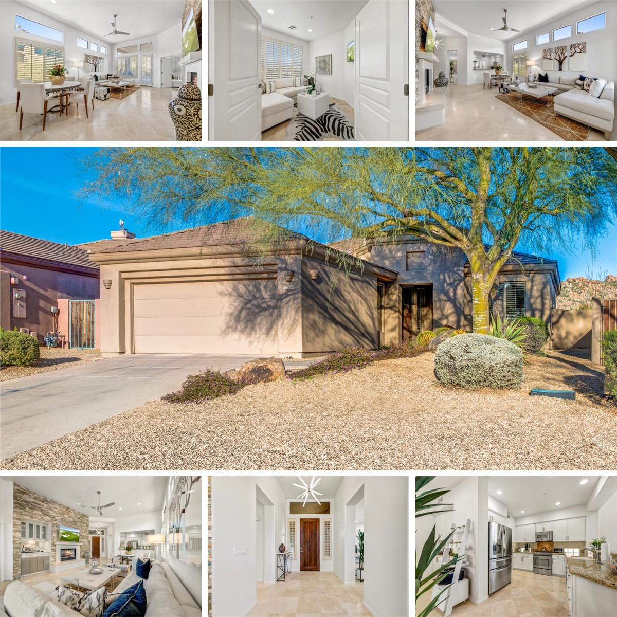 Welcome to Terravita, a premier 55+ Golf Course Community in Scottsdale! Beyond the 24 hr guard gate, you'll find world-class amenities-a state of the art fitness center, Tennis & Pickle Ball courts, an incredible restaurant, with a vibrant calendar of events. This stunning turnkey fully renovated home has 2 bedrooms plus den with expansive golf course views, a sparkling pool, 2 car garage. The eat in kitchen and laundry room complete the picture of comfort. It's not just a home, it's a lifestyle in a splendid community.