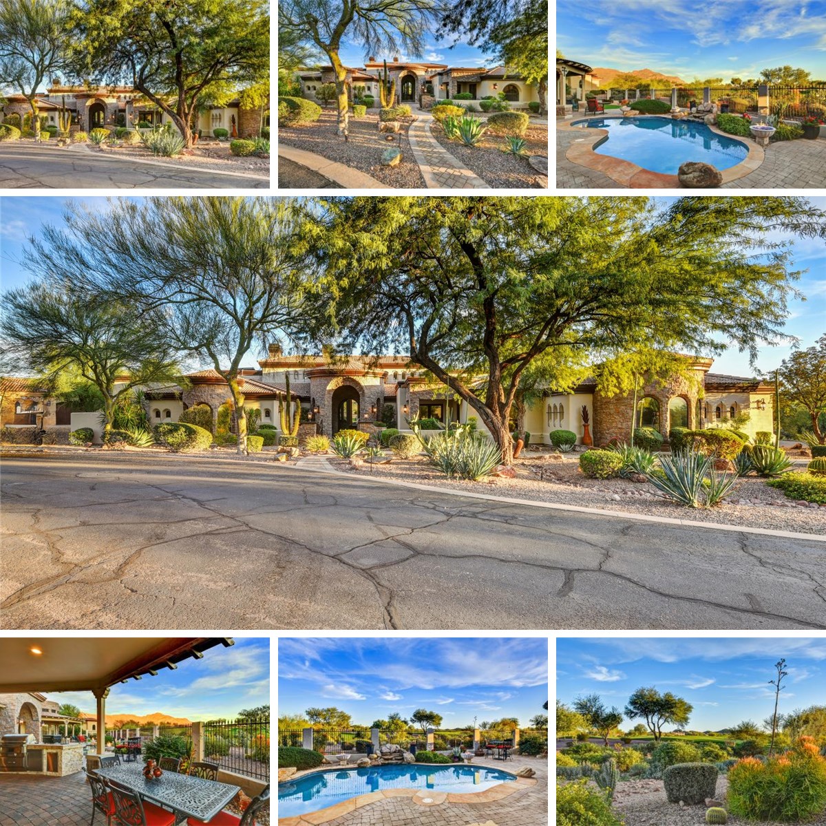 SUPERSTITION MOUNTAIN VIEWS OVERLOOKING A 'GOLF PARK' OF 3 HOLES OF THE NICKLAUS-DESIGNED LOST GOLD COURSE. Southeast backyard exposure for warm winter sun on an ocean blue PebbleTec pool. A Lyle Anderson community, 24/7 guard gated, in AZ's best kept secret-Gold Canyon! Only 36-hole private country club in Central AZ. Golf club membership separate. Dramatic architecture, highly upgraded w/5 baths, office, & oversized garage accommodating up to 3-4 cars. 'CONTROL 4' SMART HOME WHOLE NEW HOME AUTOMATION/ NEW SOLAR SYSTEM W/TESLA BATTERIES, ALL NEW HVAC SYSTEMS WITH HIGHLY ADVANCED 'PURIFI LABS AIR IONIZATION SYSTEM.' NEW 6 STAGE WHOLE HOME WATER TREATMENT, NEW PAINT INSIDE & OUT, ALL NEW FLAT ROOF AREAS W/30 YEAR WARRANTY. This home is exceptional in quality, location, & maintenance. 'Rustical' Italian decor. Fully updated w/modern lighter colors & finishes. No carpet. Dramatic 20' ceilings w/beams. Art niches & alcoves. New exterior front doors. Exceptional kitchen with designer cabinetry and features; kitchen island with breakfast bar plus new under counter Scotsman ice maker; eat-in-kitchen area; granite kitchen counters with stone backsplash. Six burner Dacor gas cook top and wall pot filler; Double Dacor electric wall ovens; Sub-Zero refrigerator; Two walk-in pantries; Insta-hot water at kitchen sink, filtered water and house water softener; Newer LG dishwasher; trash compactor; warming drawer; kitchen desk. Abundant fine cabinetry throughout. Preferred North/Southeast orientation. 2 natural gas fireplaces. Clerestory windows. Coffered, beamed, and groin vault ceilings. Attractive Travertine flooring. Granite and stone countertops throughout. Central vacuum. Kohler bath fixtures; 3 new smart toilets. LED canned lighting; updated lighting fixtures throughout; 6' x 9' glass front refrigerated wine wall insulated and rebuilt. Formal dining with butler's panty complete with sink and beverage refrigerator. All bedrooms ensuite with walk-in closets and exits to private patios; Family room automatic blinds. Oversized primary suite with a bonus room with sink and refrigerator; beautiful walk-in closet with designer built-ins and island cabinet with granite countertop. Jetted tub and double sinks with attractive granite countertops; master bedroom fireplace with Cantera surround; vaulted beamed ceilings; plantation shutters; built in cabinetry on wall adjacent to fireplace; private exit to pool; separate water closet with bidet; walk-in steam shower with stone surround; Junior primary suite fully upgraded; jetted tub; walk-in shower and double sinks. Water closet; granite countertops; Office with a 20' ceiling; built-in cabinetry. Attic re-insulated. New theater surround sound system. Three spacious rear patios. Professionally landscaped, quiet cul-de-sac, immaculately maintained. All new ground landscape wiring and bulbs. Entertainer's dream backyard with built-in BBQ and separate island bar; new Coyote Pellet stove; numerous outside conversation areas; newer PebbleTec pool, heated with variable speed pump. New pool heater controls. Three attractive gas fire pots surround pool; back patio opens to a vast open space overlooking 3 holes of the Nicklaus-designed Lost Gold course; large screen outdoor TV over bar; home setting is totally private from all surrounding residences and set back from the golf course; stunning mountain vistas; Above ground hot tub off master; 3 patio areas, two with artificial turf. 3 work stations in car collector's garage. 12' x 20' air conditioned garage storage room. Room for up to 4 cars, one bay in tandem for a smaller car; 3 separate bays are from 20' to 30' in depth; epoxy floor; 3 separate work areas. Electric vehicle charger. New garage door opening mechanisms and rails. 7 years left on main roof warranty. Owner has made over $470K in improvements in the past 3 years--see document tab. Abundant storage. While all information is deemed correct, it is not guaranteed.