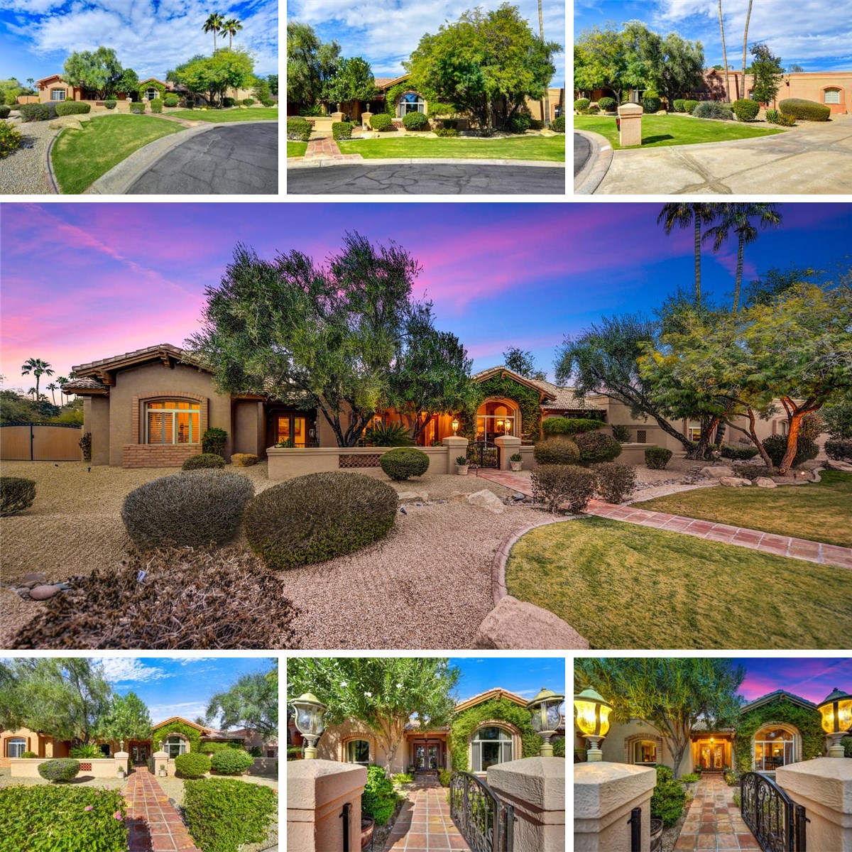 Welcome to this remarkable Scottsdale estate, perfectly situated on a private cul-de-sac in one of the area's most desirable enclaves. Thoughtfully designed for both sophisticated living and exceptional entertaining, this residence offers four bedrooms, four bathrooms, and an array of impressive amenities. Rich hickory wood flooring, dramatic wood beams, and multiple fireplaces infuse the home with warmth and timeless elegance. The gourmet kitchen is an entertainer's dream, showcasing an oversized island, butler's pantry, and premium finishes. Adjacent, the formal dining room is elevated by a stunning 435-bottle climate-controlled wine cellar, an impressive centerpiece for hosting and celebrations. A spacious game and media room complete with a 100-inch screen
