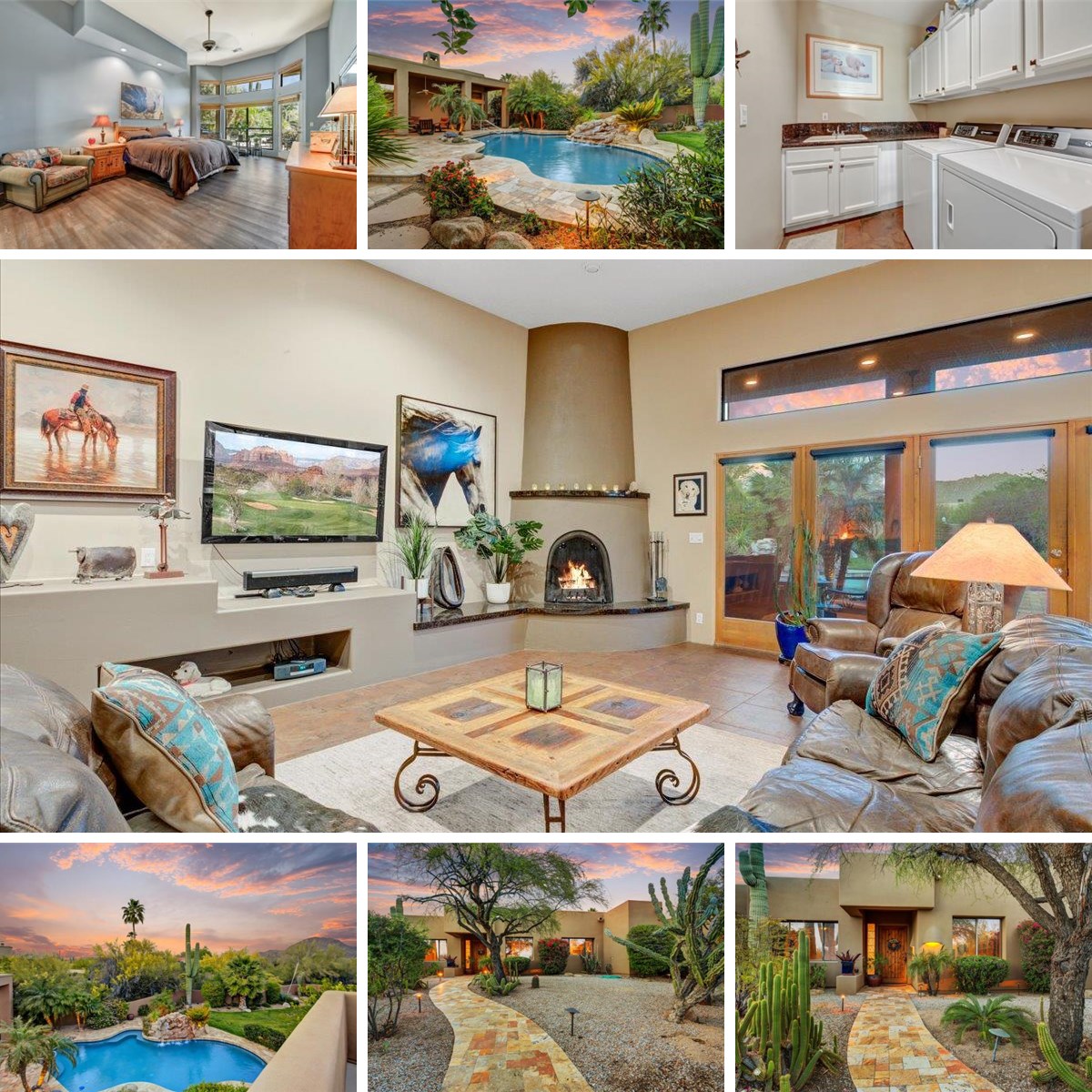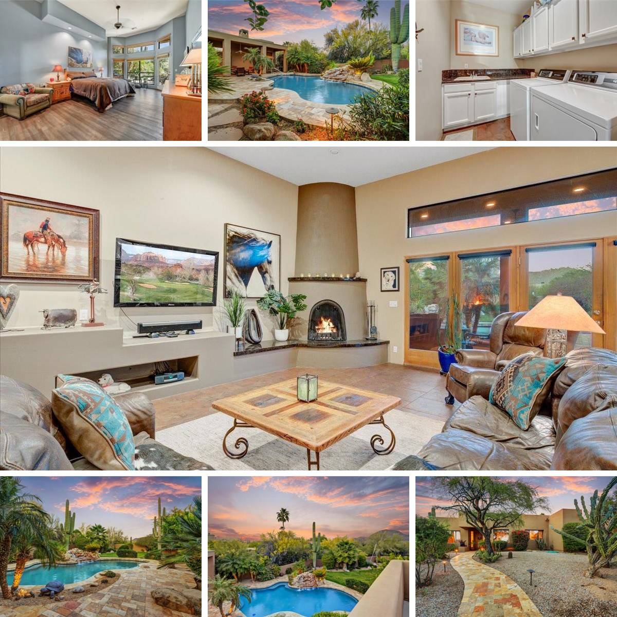Custom home in North Scottsdale! Four bedroom, three bath home on a private ¾ acre cul-de-sac lot surrounded by NAOS (natural area open space) in the prestigious community of Happy Valley Ranch. The light & bright kitchen has plenty of cabinets, granite counters and S/S appliances. Enjoy entertaining or family gatherings in the expansive great room featuring fireplace, wet bar, dining area, and billiards space. The freshly painted oversized primary has a separate exit to the back patio and a large bathroom with dual sinks, a separate tub & shower, and walk-in closet. The split floor plan includes a guest bedroom en-suite. The backyard oasis is amazing with travertine decking, pebble sheen pool, huge tranquil rock waterfall, horseshoe pits, gigantic saguaros, and stunning mountain views.