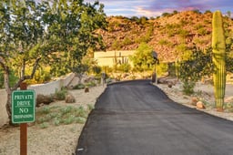 Nestled against a dramatic mountain backdrop and framed by striking rock formations, this exceptional 7.4-acre estate captures the essence of privacy, tranquility, and resort-style living. Thoughtfully positioned to embrace its breathtaking surroundings, the residence offers 4 bedrooms, 6 bathrooms, and an atmosphere where nature and luxury living seamlessly converge. A long, gated private drive sets the tone as you arrive at this serene retreat, perfect for hosting gatherings or welcoming guests in grand style. For car enthusiasts, parking for up to 13 cars will be greatly appreciated.
